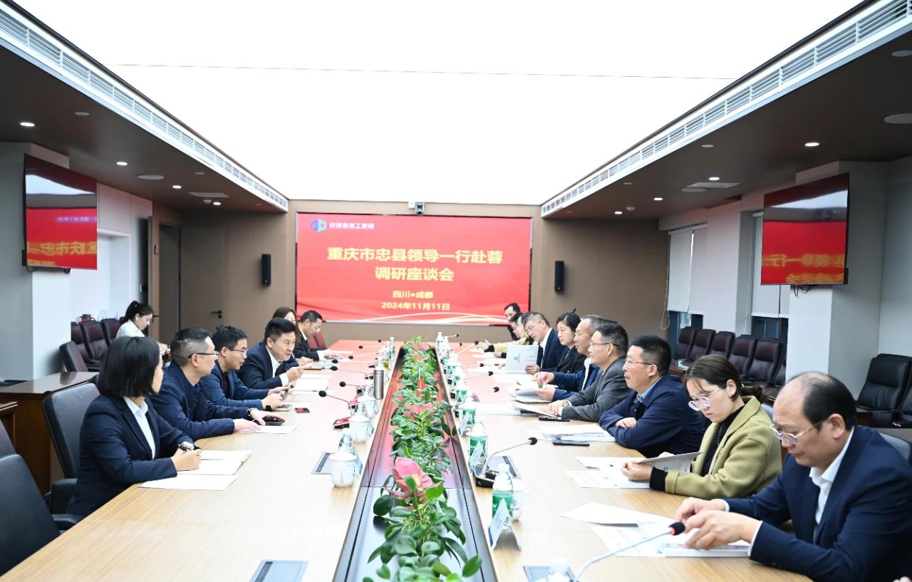 11月11日上午,重慶市忠縣政協主席袁德祥率隊蒞臨中誠投建工集團調研指導。忠縣縣委常委、統戰部部長李彬,忠縣政協副主席何波,忠縣