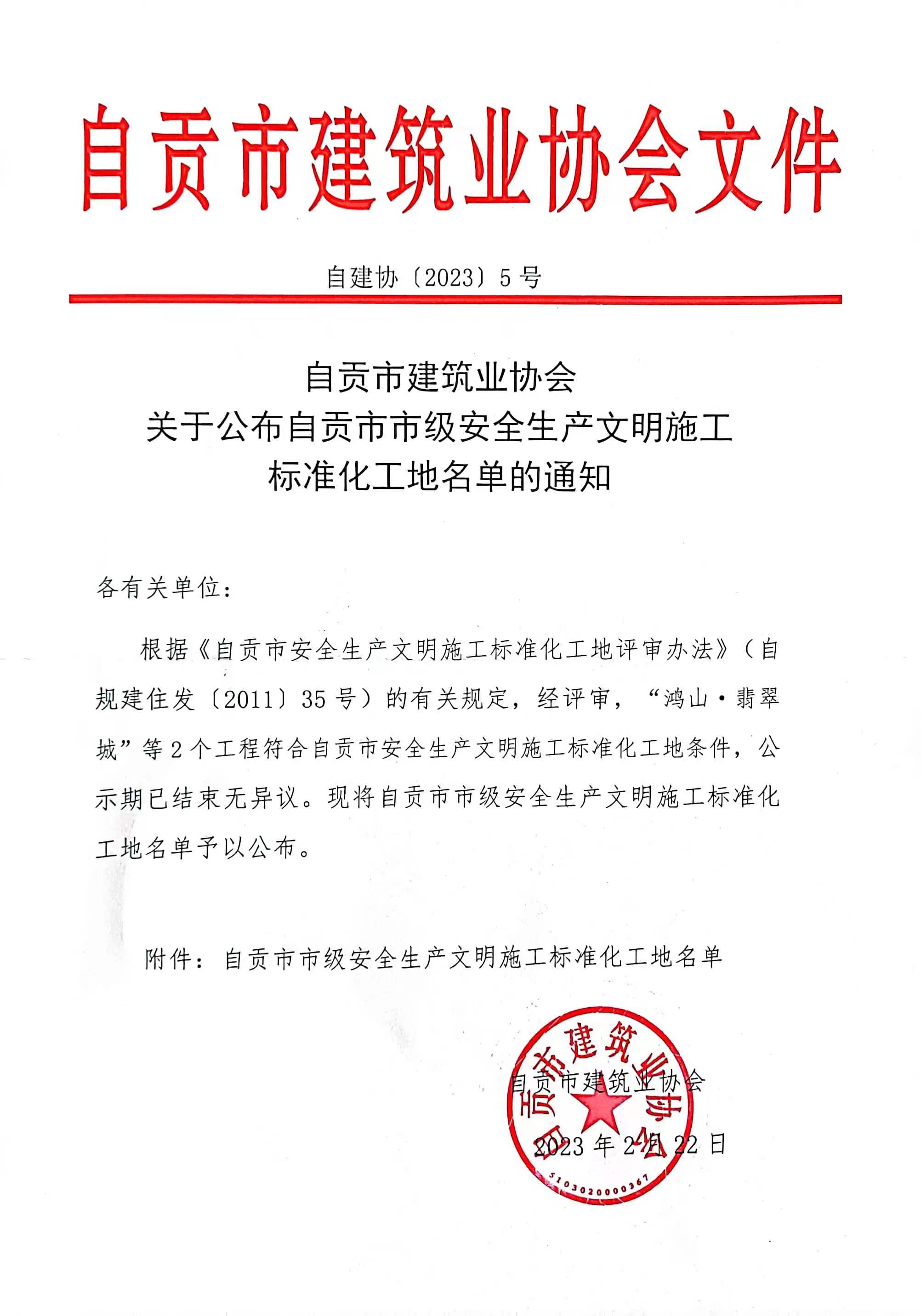 近日,自貢市建筑業協會印發《關于公布自貢市市級安全生產文明施工標準化工地名單的通知》,中誠投建工集團富順縣人民醫院二期項目