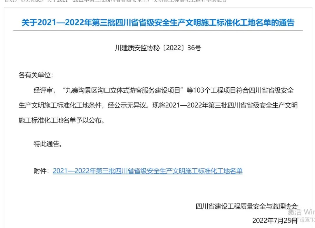 近期,四川省工程質量安全與監理協會發布了《關于2021-2022年第三批次四川省省級安全生產文明施工標準化工地名單的通告》,中誠投
