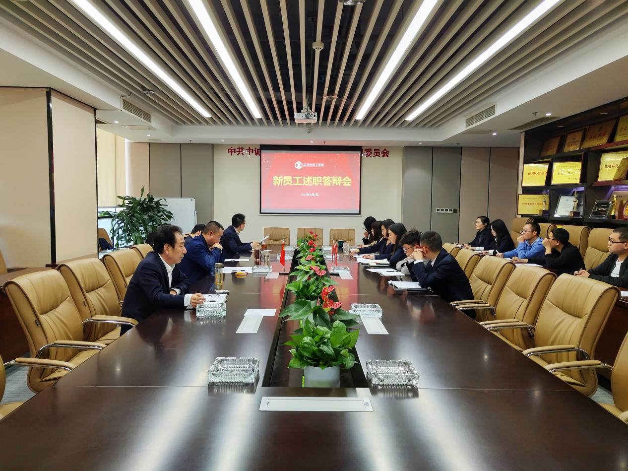 近日,集團公司組織召開新員工述職答辯會,主要對所任職工作進行闡述并提出自己的看法和建議。集團公司總經理張輝,副總經理張阜文、