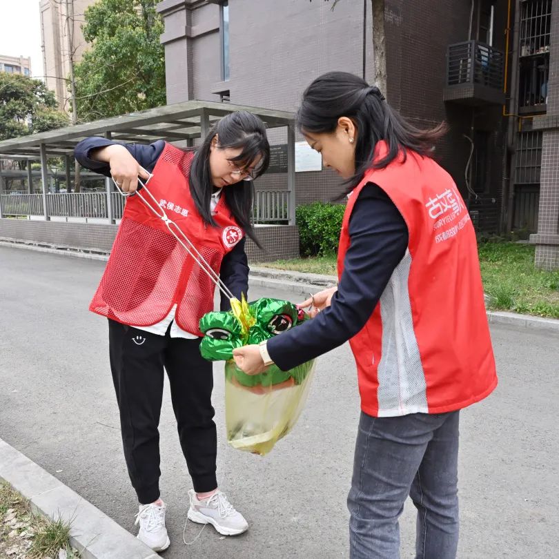 隨后,全體同志穿上紅馬甲,戴上紅袖章,在社區工作人員的引導下,迅速分為兩個小組,分別進入到七里社區居民點,對小區道路、綠化帶進行了“地毯式”清潔。大家彎著腰,拎著垃圾袋,一邊撿拾散落在道路和草坪的垃圾,一邊對隨地吐痰、亂扔垃圾、亂堆亂放等不文明行為進行勸導,引導居民自覺踐行文明行為,主動為創建文明典范城市、喜迎大運會營造良好的環境和氛圍。同時,大家還一起動手,將小區門口的共享單車進行規整擺放,為居民使用單車提供便利。