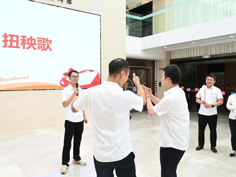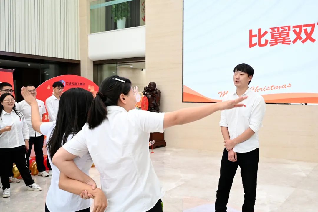 隨后,員工們興致勃勃,紛紛加入趣味游戲比賽。在“心有靈犀”游戲中,各隊伍代表通過形象地比劃、表演,讓隊員猜出屏幕上的成語、詞語,五花八門的動作讓現(xiàn)場人員啼笑皆非,場面熱鬧非凡。
