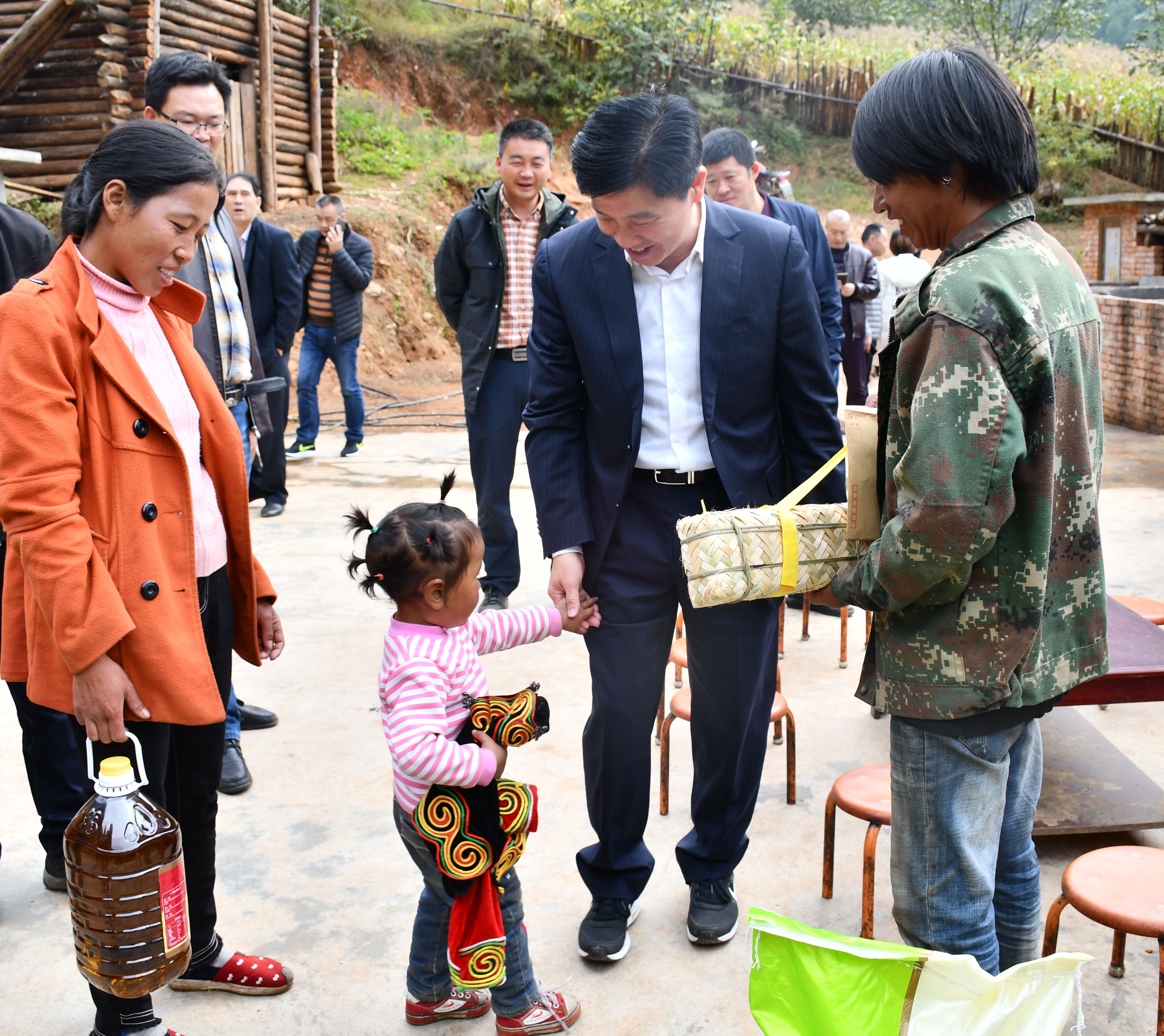 10月12日早上,懷揣著對(duì)住在半山腰馬日伍一家的牽掛,董事長(zhǎng)郭代軍帶領(lǐng)扶貧隊(duì)一路爬山來(lái)到馬日伍家里。他來(lái)不及坐下休息,急切地詢問(wèn)馬日伍的病情和生活情況,他走進(jìn)馬日伍家中的廚房和臥室。簡(jiǎn)陋的廚房和僅有兩張搖晃得厲害的單人床臥室,讓郭董事長(zhǎng)心情愈加沉重,他親切地拉著馬日伍女兒的手對(duì)馬日伍一家說(shuō):“病痛、貧窮都不要怕,我們大家會(huì)一起幫助你度過(guò)難關(guān)。”隨即,扶貧隊(duì)將大米、食用油、磚茶和1000元的慰問(wèn)金送到了馬日伍手中。
