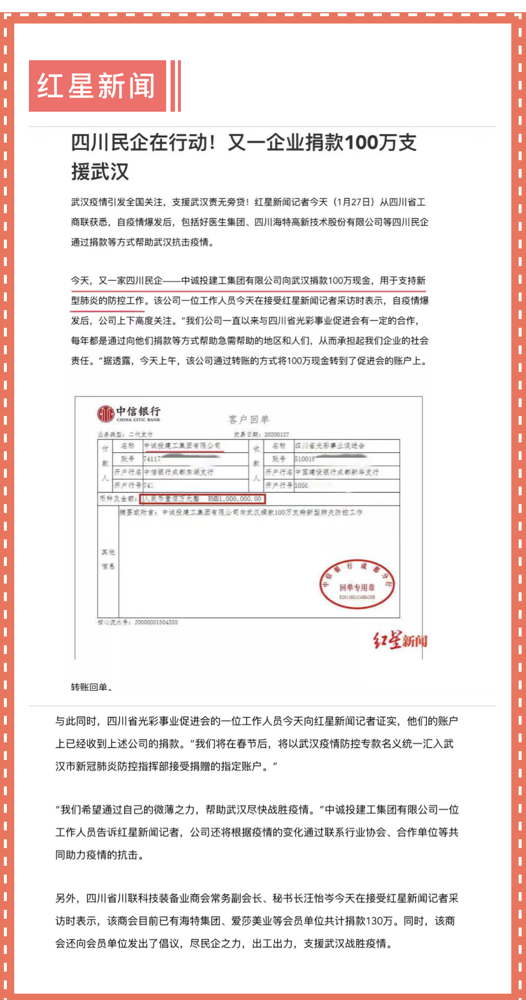紅星新聞、中華工商時報全聯通、騰訊新聞等多家媒體,均特別報道了集團公司向武漢捐款的消息,高度贊譽中誠投的擔當與善舉,同時,也得到了行業同仁及社會各界的大嘉贊賞。