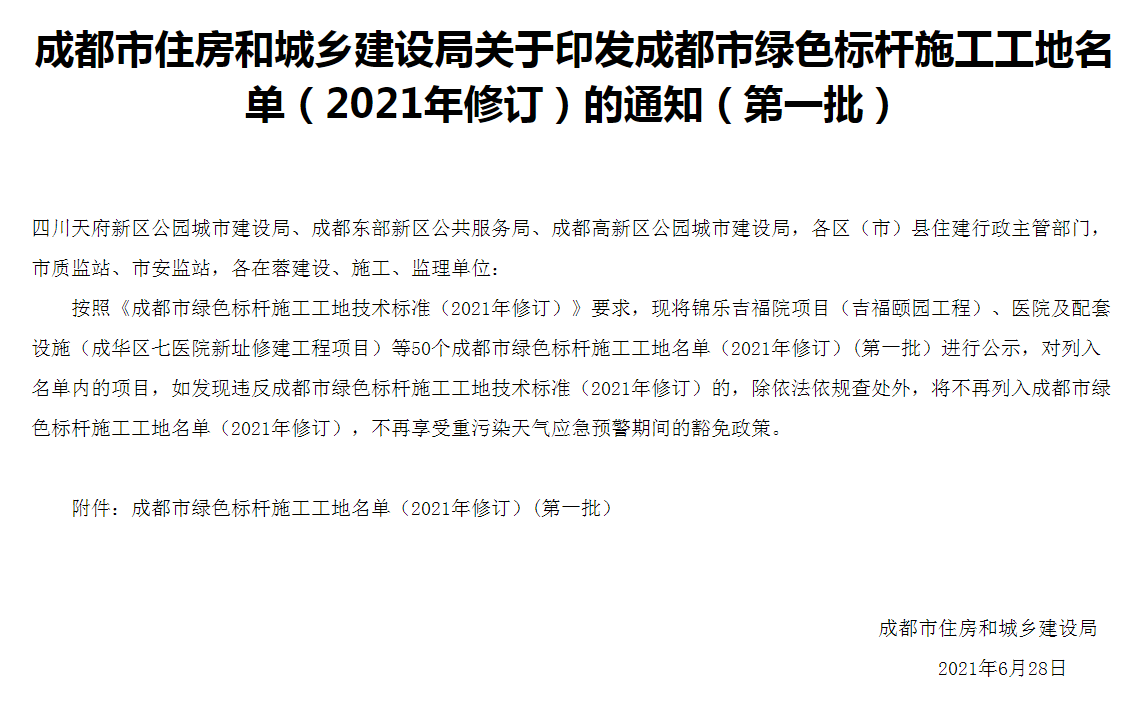 日前,成都市住房和城鄉(xiāng)建設(shè)局公布了成都市綠色標桿施工工地名單,由集團公司承建的三利廣場項目榮獲“綠色標桿施工工地”稱號。