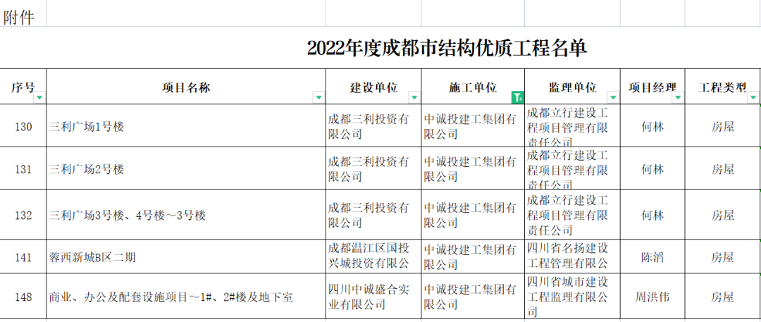 中誠投建工集團(tuán)三個(gè)項(xiàng)目獲2022年度成都“結(jié)構(gòu)優(yōu)質(zhì)工程”獎(jiǎng)