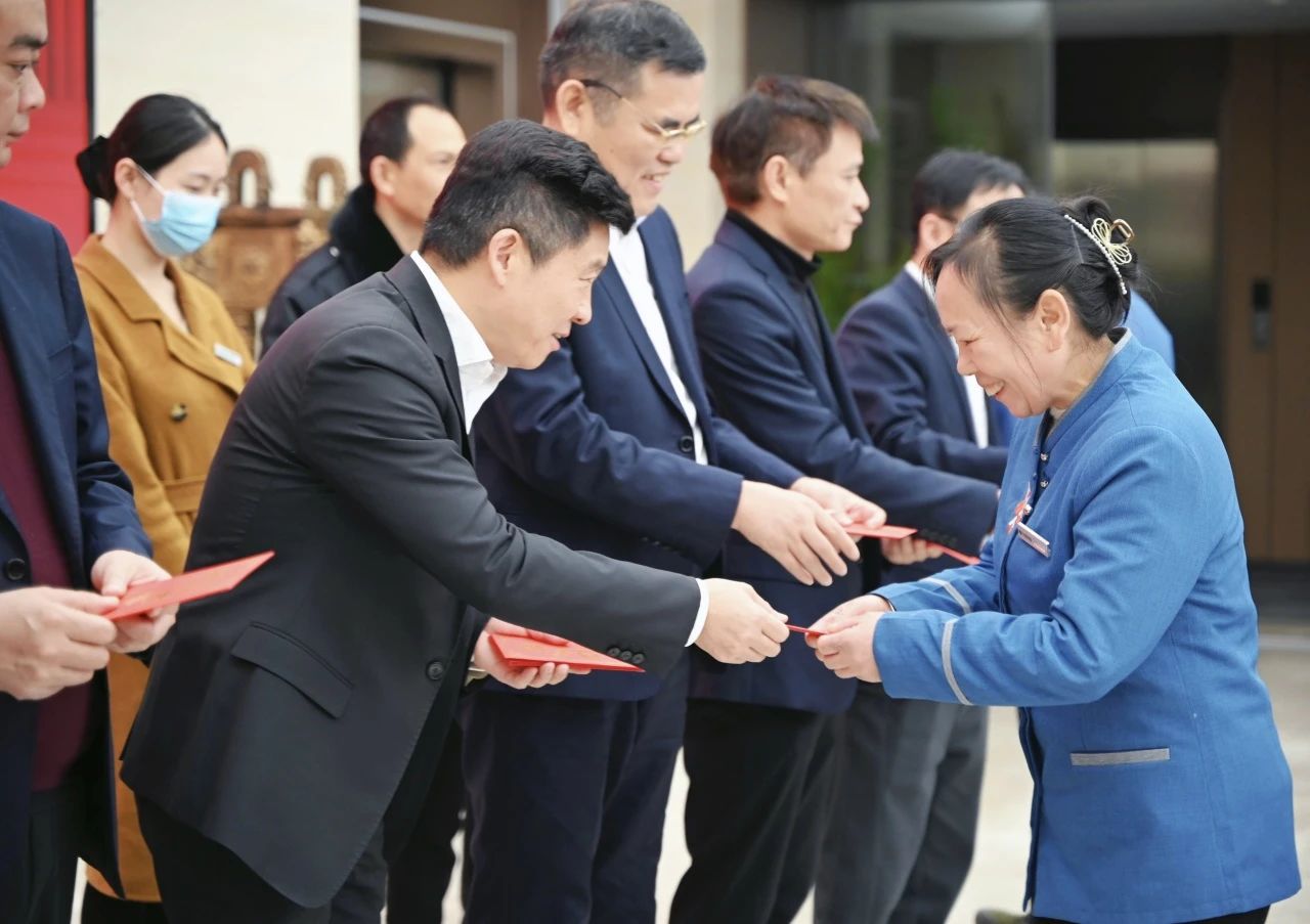 新年開好局,利是開鴻運(yùn)。集團(tuán)公司領(lǐng)導(dǎo)班子分別向各管理中心員工派發(fā)“開工利是”,并在歡聲笑語(yǔ)中傳遞著新年的祝福和期望。聲聲問(wèn)候暖人心,句句囑托鼓干勁,大家接過(guò)開工利是笑容滿面、喜氣洋洋,儀式現(xiàn)場(chǎng)洋溢著幸福、溫暖的氛圍。