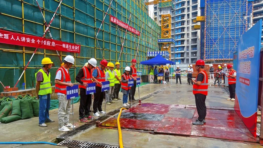 開展專題培訓,強化安全意識。各項目通過安全生產專題培訓、觀看警示教育片、班前會等多種形式開展安全生產教育培訓,深入學習貫徹《安全生產法》《安全技術標準規范》等內容,并組織項目員工學習討論,引導大家結合自身崗位經歷談體會、說感悟、講安全,培養廣大一線施工人員良好的安全行為習慣,進一步增強施工人員的安全生產意識。同時,為重點突出“暢通生命通道”在避險逃生和應急救援中的關鍵作用,各項目積極組織項目人員開展消防演練、防洪防汛應急演練及應急疏散演練。通過專題培訓、集中宣講、實戰演練等多種培訓學習方式,切實有效地將理論知識轉化為推動安全發展的工作實踐。