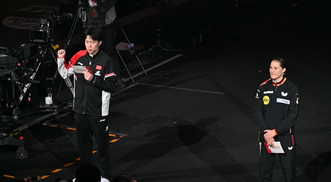 中國運動員王楚欽和德國運動員沙賓·溫特作為運動員代表進行宣誓。來自中國的邱瑩和來自捷克的羅曼·克萊克作為裁判員代表作出公正執裁的承諾。